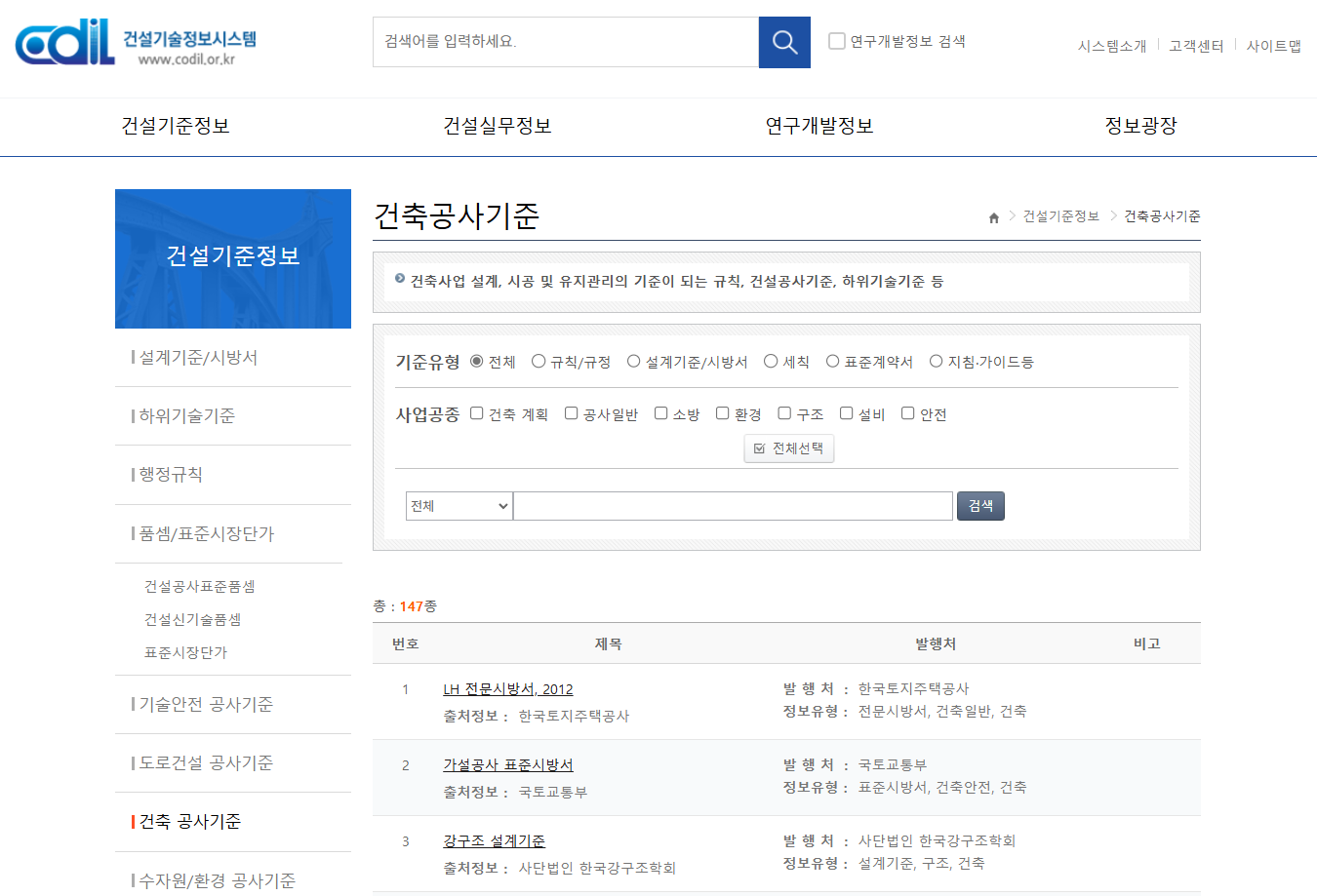 건설기술정보시스템 – 전문시방서 → LH 공사를 예로들면 목적은 중복공정의 축소, 시방서 관리조직의 최소화를 통한 운영 효율성 향상, 기술축적 최대화, 사용성 및 공사간의 연계성 향상과 클레임 요인 축소 등의 사유로 전문시방서를 제작합니다.