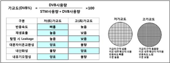 - Styrene 대비 DVB 비율에 따라 가교도가 달라짐