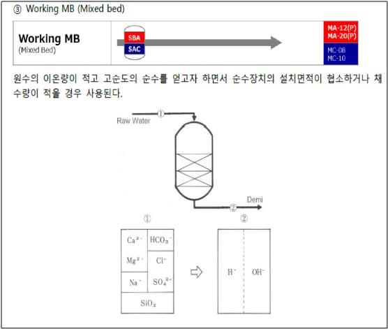 음이온교환수지 메커니즘 (강염기성) 3) 이온교환수지 반응/재생(반응 후) 메커니즘 (양/음이온교환수지 혼합탑)