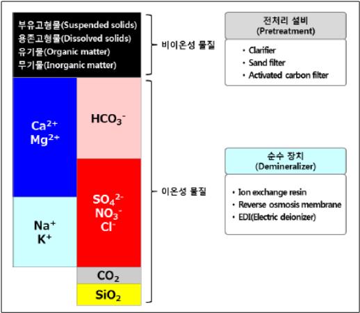 - Ca2+, Mg2+: 배관막힘(Scale) 원인