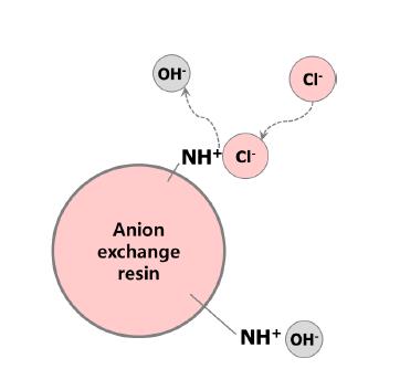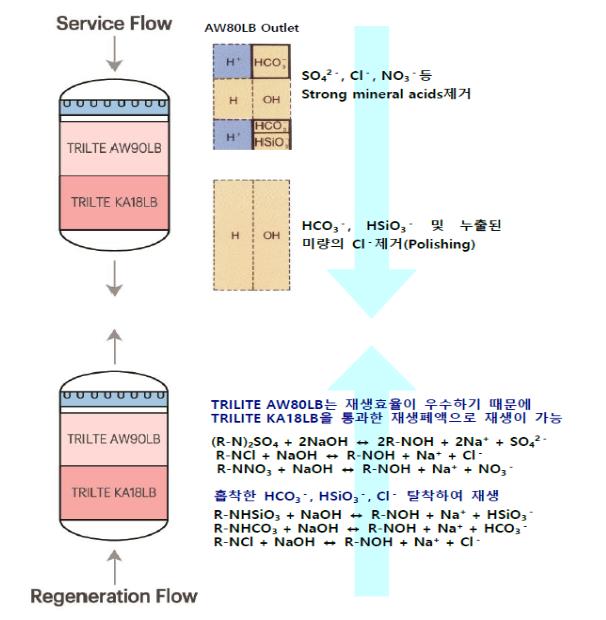 (R-NHCl+ OH- ↔ R-NHOH+ Cl- (REGENERATION)* 실제는 Cl- 뿐만 아니라 음이온 물질을 제거함
